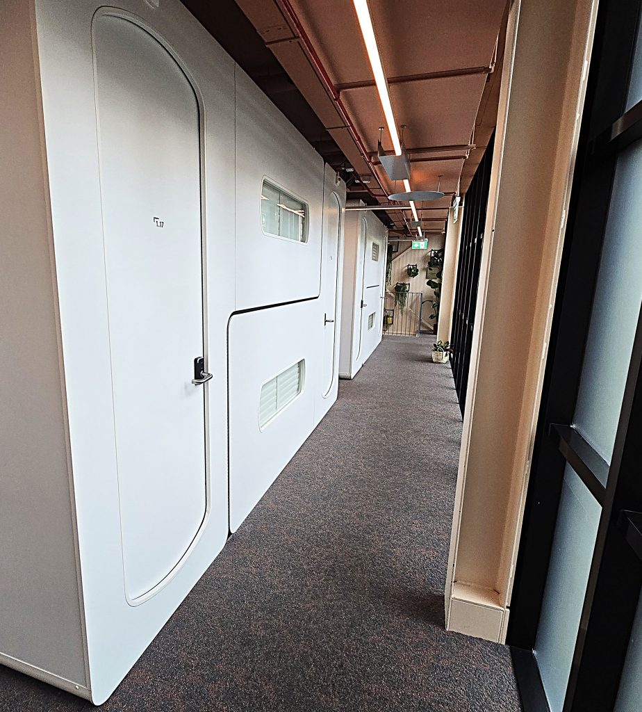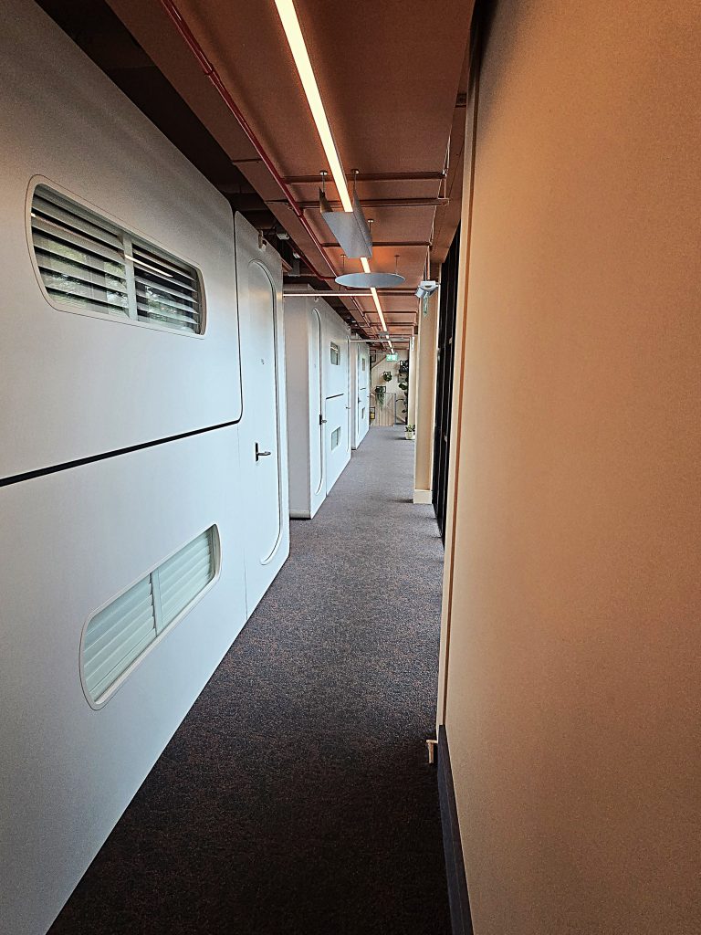 In hotels, more and more often, the check-in is contactless. Sometimes, I don’t see anyone at all—just codes and messages floating around. The next level is cabins. Again, mostly wireless. In fact, at “CityHub Rotterdam,” there is a wristband with a chip that allowed me to go wherever I was permitted to: bathroom, shower, cabin, and the front door of the place.