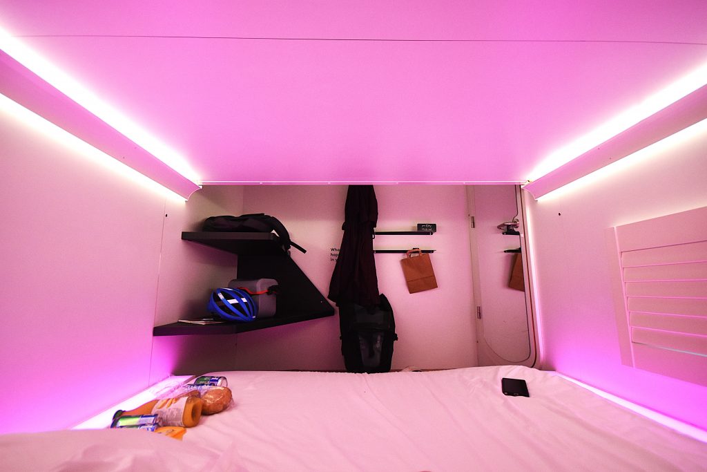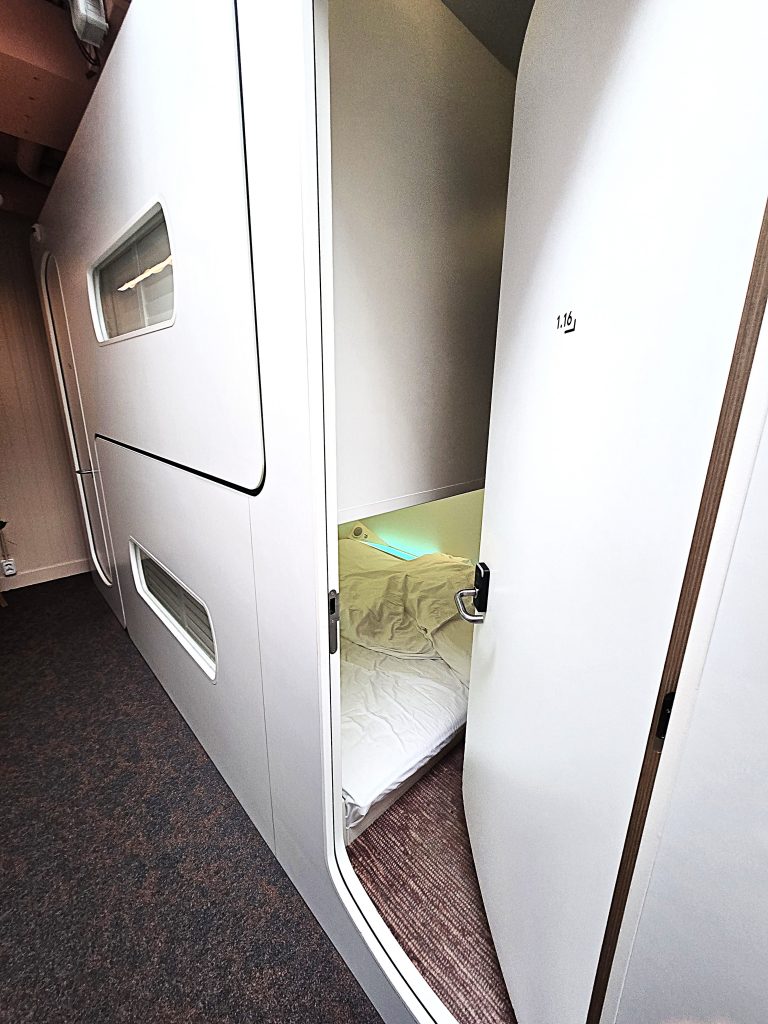 That depends on you. There’s no window, no daylight—only the clock tells you whether it’s night or day. Don’t be claustrophobic. It’s tight. Not as tight as I expected, but still.