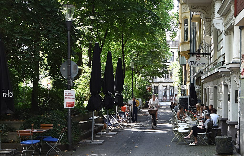 Brussels’s Square in Cologne is, in fact, not really a square-it’s more an old church surrounded by a park. It’s a peaceful place with little traffic and plenty of spots to sit down. Around the square lies the Belgian Quarter, a neighborhood of Cologne, full of small shops, boutiques, restaurants, and cafés. Rents here are among the highest in town. Life seems peaceful—this is where the kind people live.