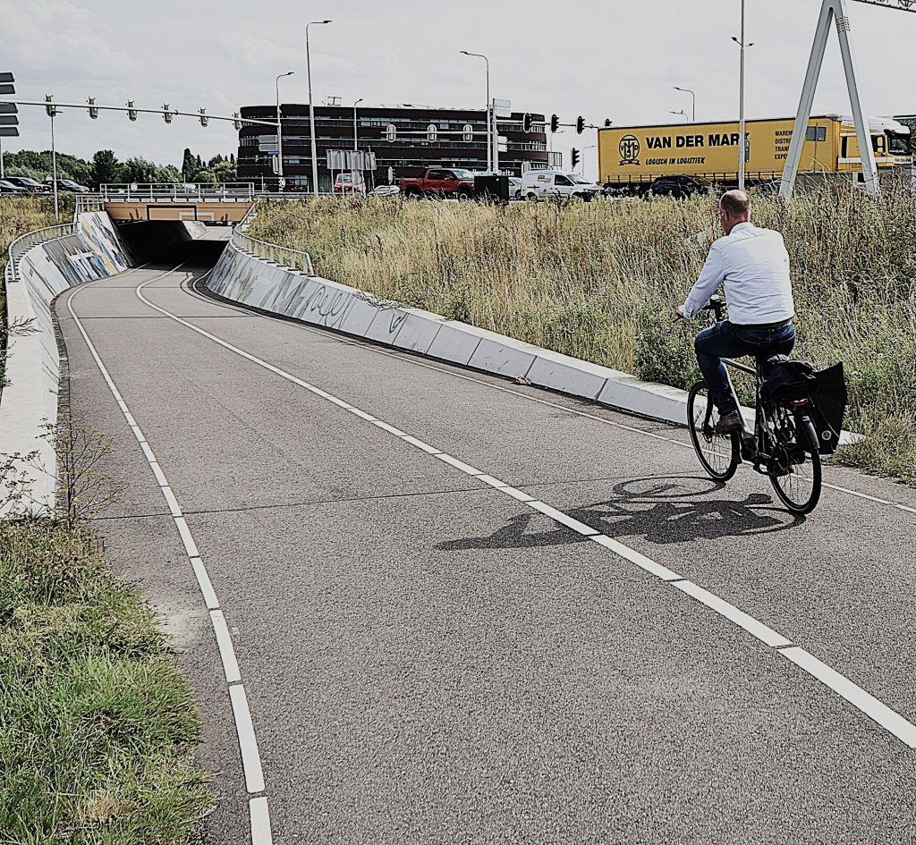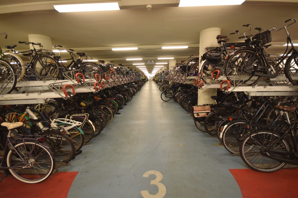 Which can be answered in the Netherlands in only one way: Everybody does it. At least, that’s what it seems like, especially in cities like Amsterdam and Utrecht. Statistics show that almost one-third of all trips in the Netherlands are made by bike, and judging by the overwhelming presence of bikes parked along the streets, I’d guess the percentage is even higher. Often, huge crowds of bikes dominate the streets, and a single car caught between them just tries to hide. This is a biker’s paradise—cyclists are treated as a priority. Car drivers are also very careful not to ignore a biker’s right of way, which might have something to do with the fact that car drivers are legally more liable in case of accidents.
