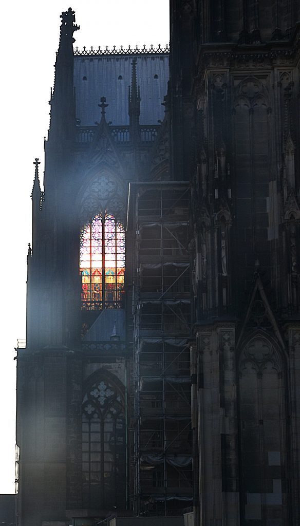 And Cologne Cathedral is not just huge and beautiful; it is also very old. The groundbreaking ceremony took place in 1248. Then, in 1528, they ran out of money, and for 300 years the unfinished construction site stood like an open wound in Cologne—silent, exposed, and slowly turning rotten. Residents are quoted as saying: “The day the Cathedral of Cologne is finished, the world will come to its end.” From time to time, a bishop would try to rip out some of the cathedral’s Gothic elements and replace them with Baroque architecture. Fortunately, that never worked out—mainly due to a lack of funds—so the half-finished cathedral remained Gothic in style.